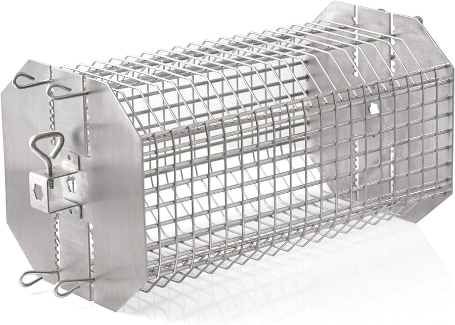 - ROBUST | Grillkorb aus Edelstahl. Die kontinuierliche Bewegung des Grillguts sorgt für gleichmässiges Garen und Bräunen. Dank der 9-stufigen Verstellmöglichkeit auf beiden Seiten können Sie das Grillgut fixieren und es bleibt saftig und fällt nicht