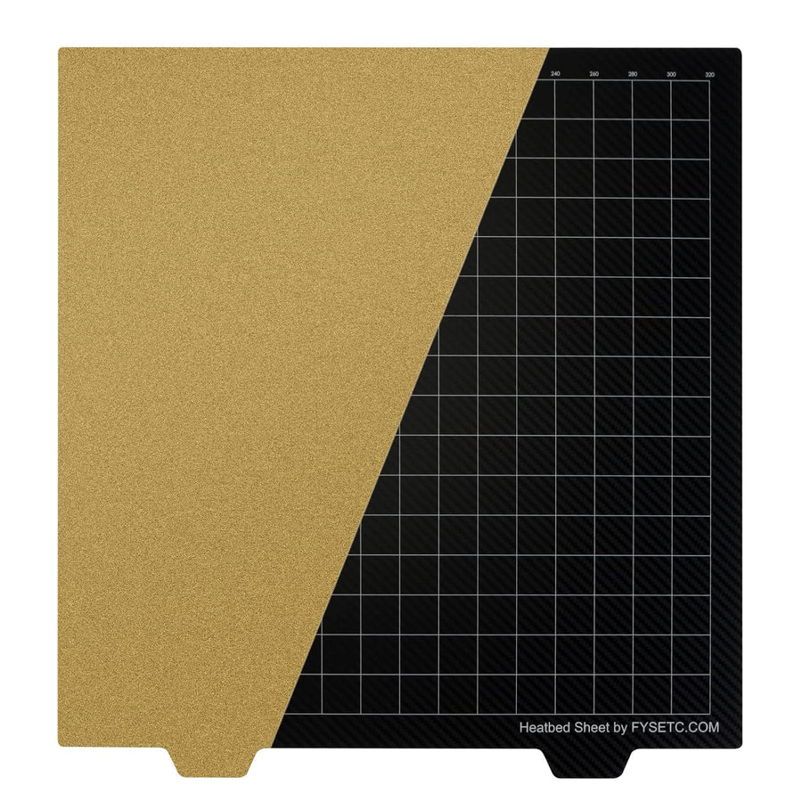 - 2022 Oktober Neuestes Upgrade 3D Druckbett Kompatibel mit Heatbed-300*300mm: Die Stahlplatte ist doppelseitig beschichtet, eine Seite mit Gold Powder PEI, eine andere mit PET Carbonn Fibree. Wenn die Haftung nicht ausreichend ist, können Sie das