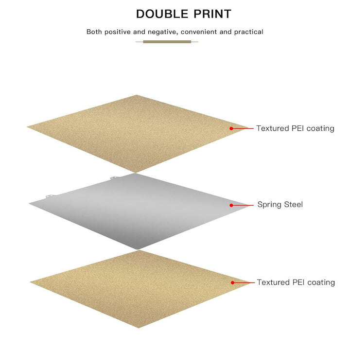 - Eine neue, verbesserte, pulverbeschichtete PEI-Flexiplatte, die ohne Maagnetaufkleber geliefert wird. Die Platten sind beidseitig beschichtet, so dass Sie eine Seite für makellose Teile aufbewahren können, während Sie die andere Seite missbrauchen.