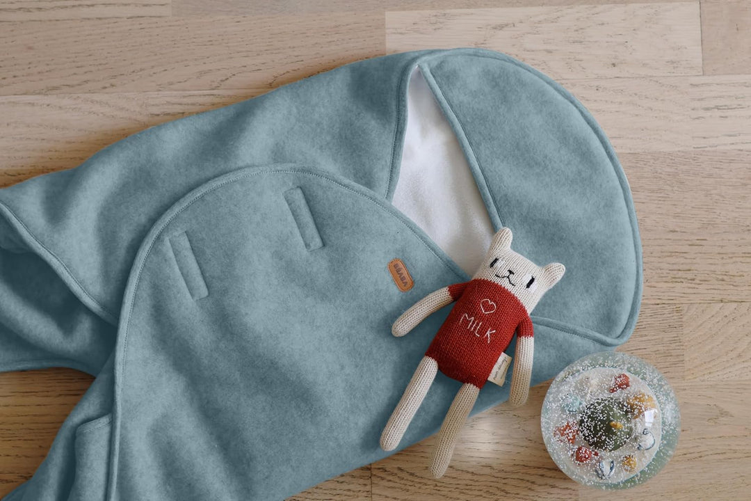 - WICKELDECKE: Ergonomisch vorgeformte, mit Fleece gefütterte Decke, die das Baby einhüllt, ideal nach der Entbindung.
