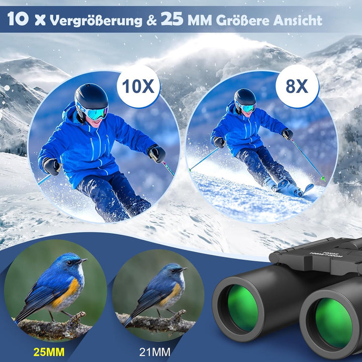 - [Kleines 10x25-Fernglas] Mit 10-facher starker Vergrösserung, 25-mm-Objektiv, 1000 m weitem Sichtfeld, bietet Ihnen ein besseres Sehvergnügen und hilft Ihnen, entfernte Landschaften und Tiere leicht zu sehen.