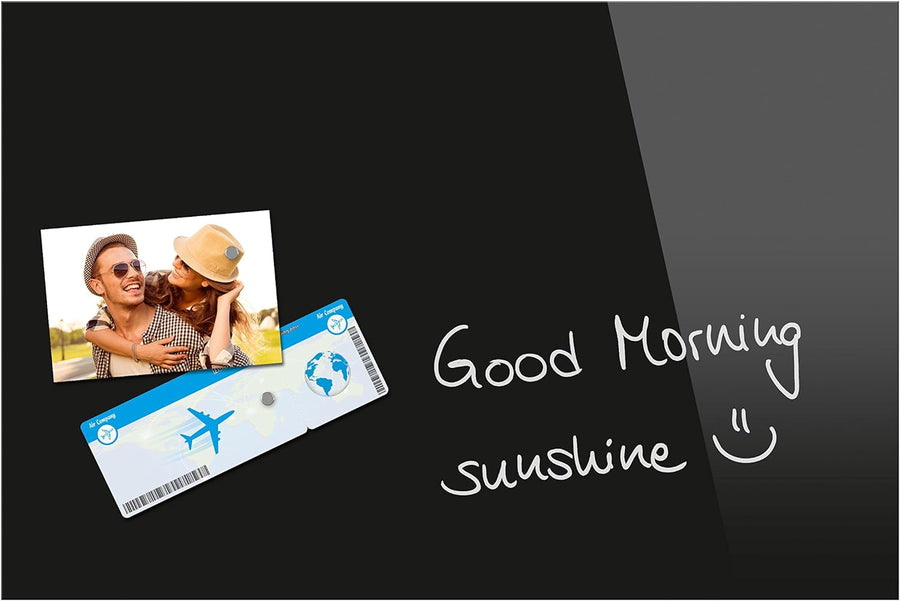 - Schwarzes Glas-Magnetboard von BeBoard zum Beschriften mit Board- und Kreidemarkern und Anbringen von Notizzetteln mit starken Magneten.
