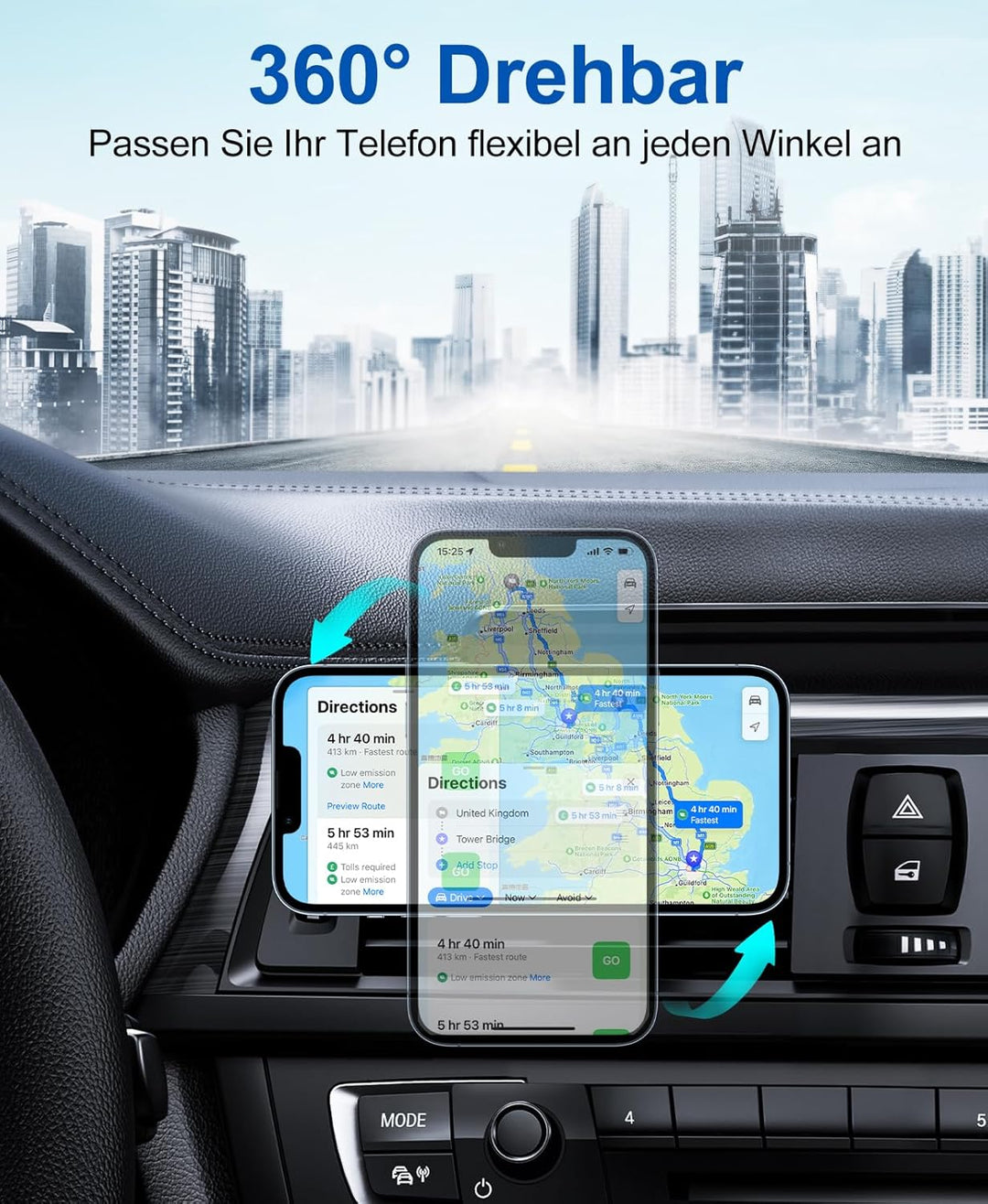 - ⚡【Verbesserter Metallhaken & 360° Drehung】Dieses Induktionsladegerät Auto ist mit Metallhaken gestaltet, das die Haltbarkeit und Stabilität des Hakens erheblich verbessert, sicher an den Lüftungslamellen befestigt werden kann, ohne zu fallen,