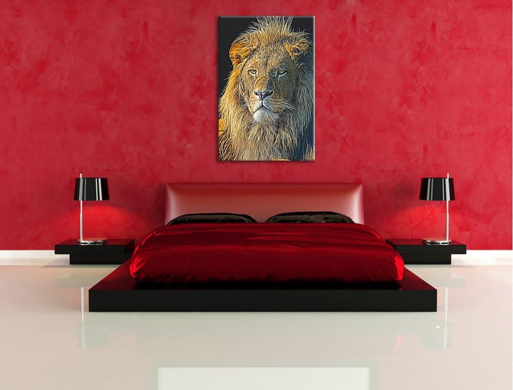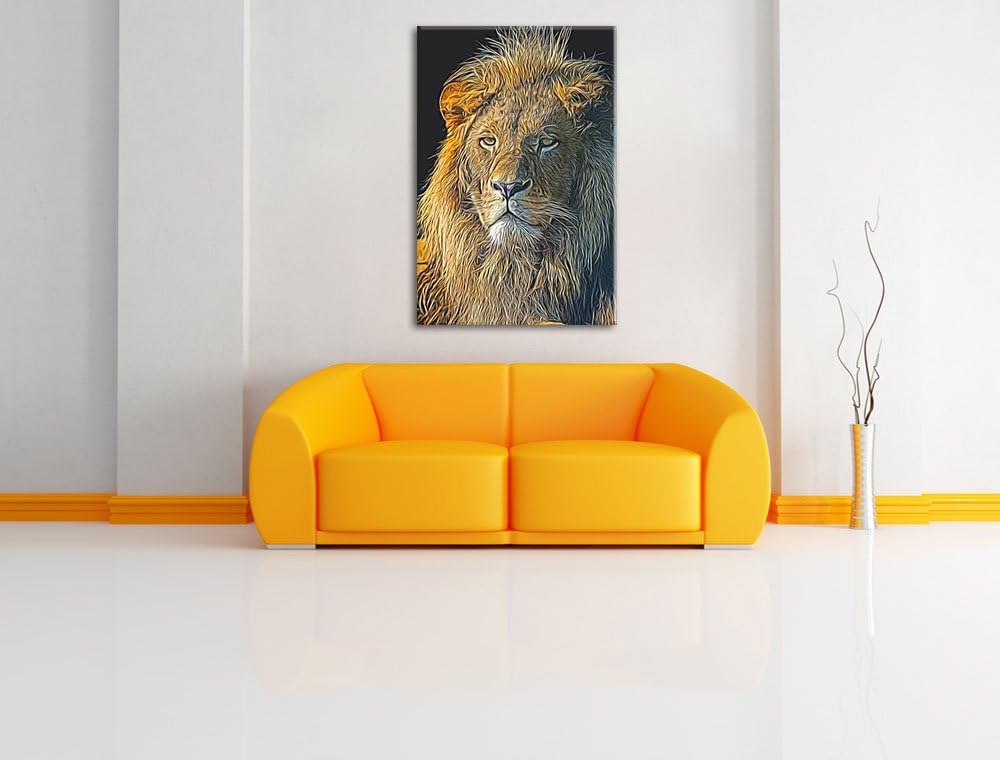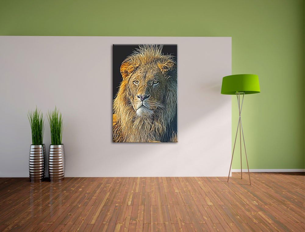 beeindruckender Löwe Deluxe Format: 100x70 cm auf Leinwand, XXL riesige Bilder fertig gerahmt mit Ke