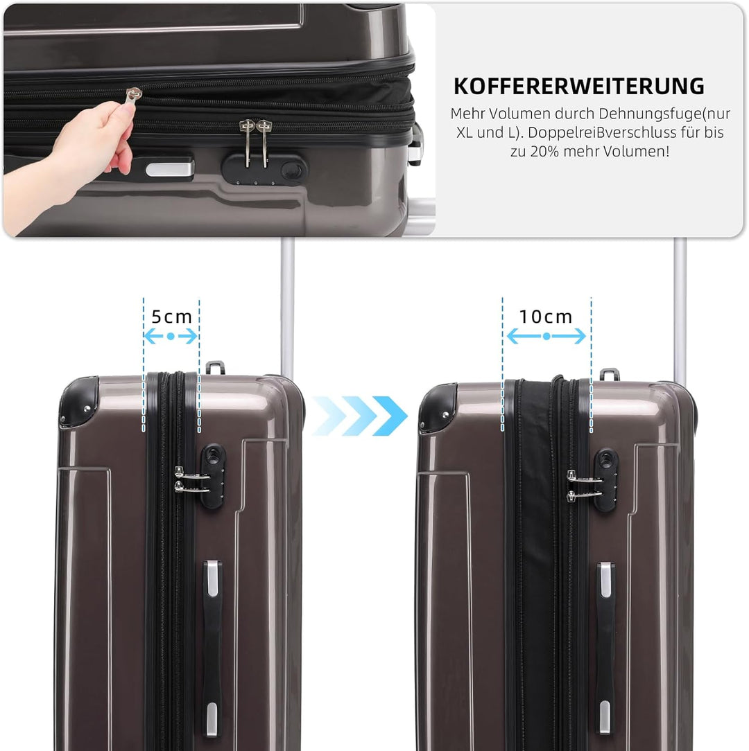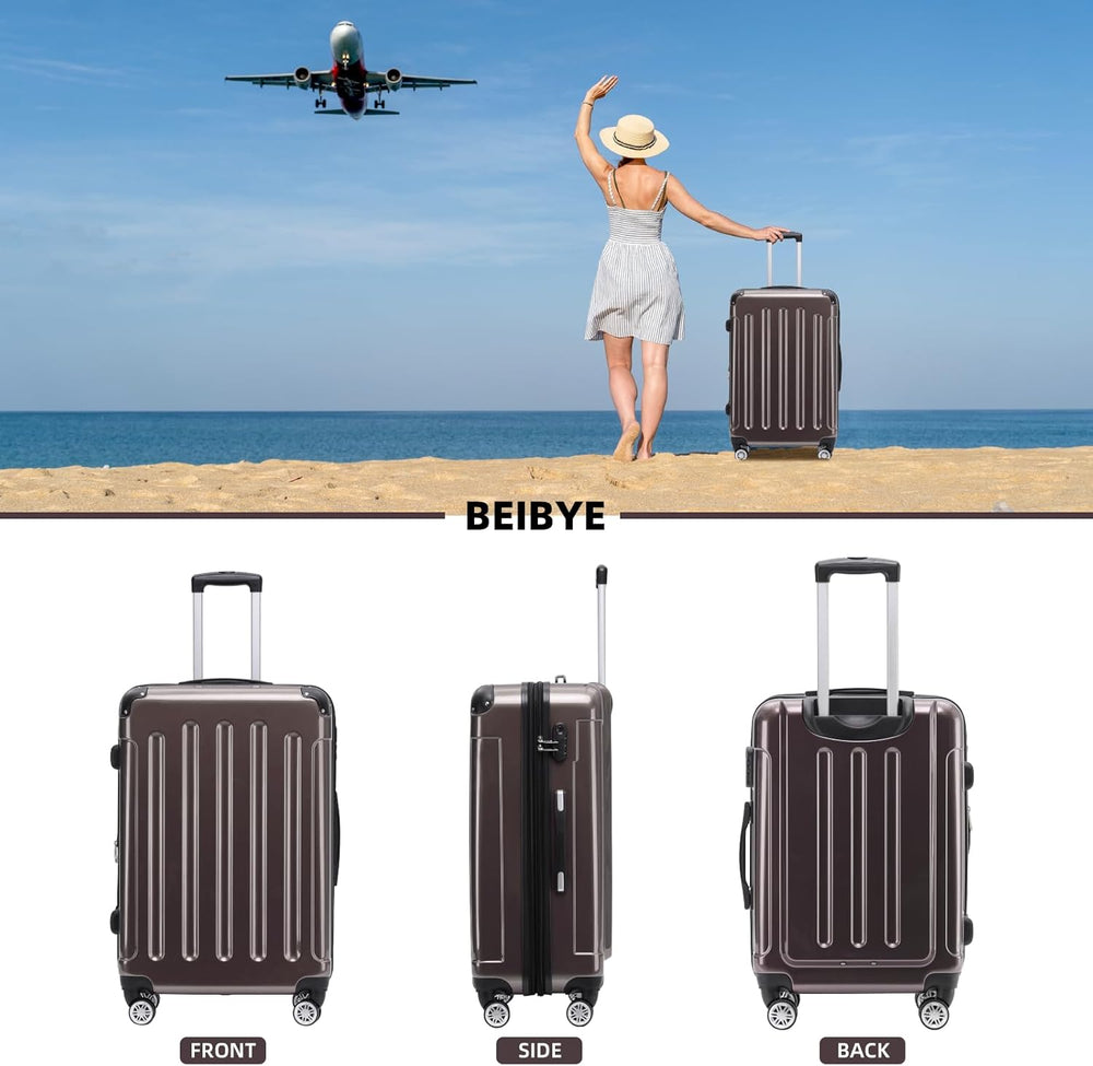 BEIBYE Hartschalen Koffer Trolley Rollkoffer Reisekoffer 4 Zwillingsrollen Polycabonat (Coffee, Hand