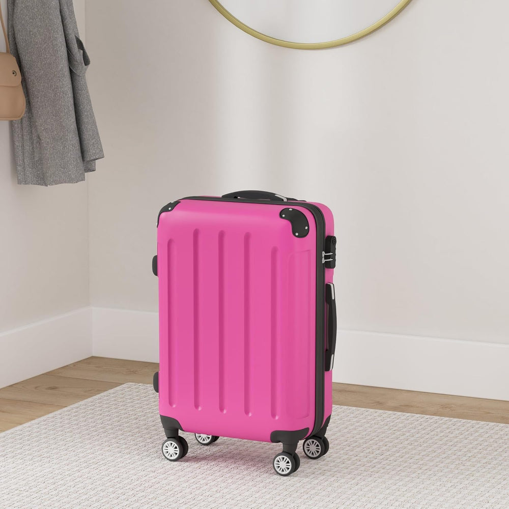 BEIBYE Hartschalen Koffer Trolley Rollkoffer Reisekoffer 4 Zwillingsrollen Polycabonat (Pink, 66cm -