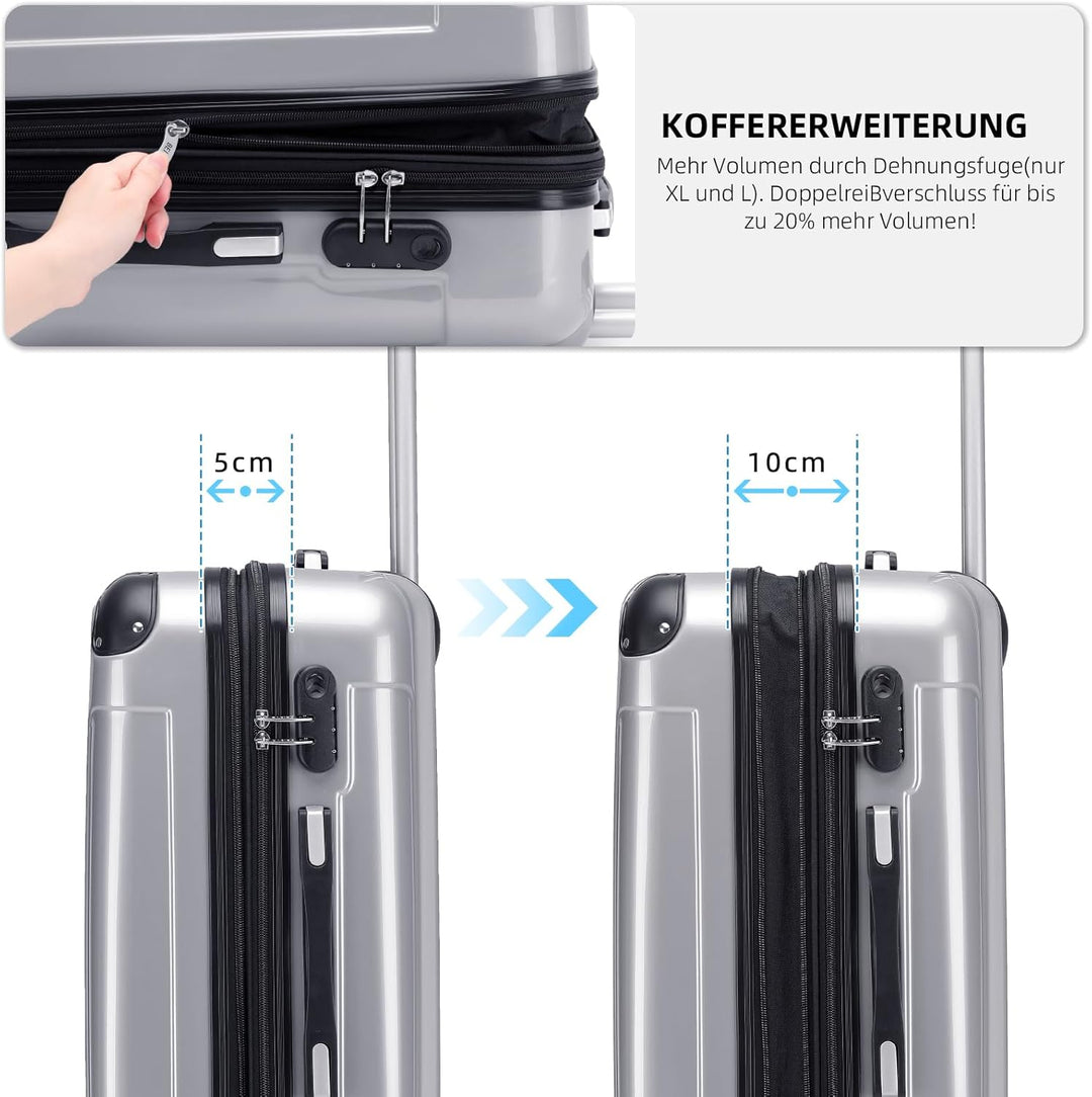 BEIBYE Hartschalen Koffer Trolley Rollkoffer Reisekoffer 4 Zwillingsrollen Polycabonat (Silber, Hand
