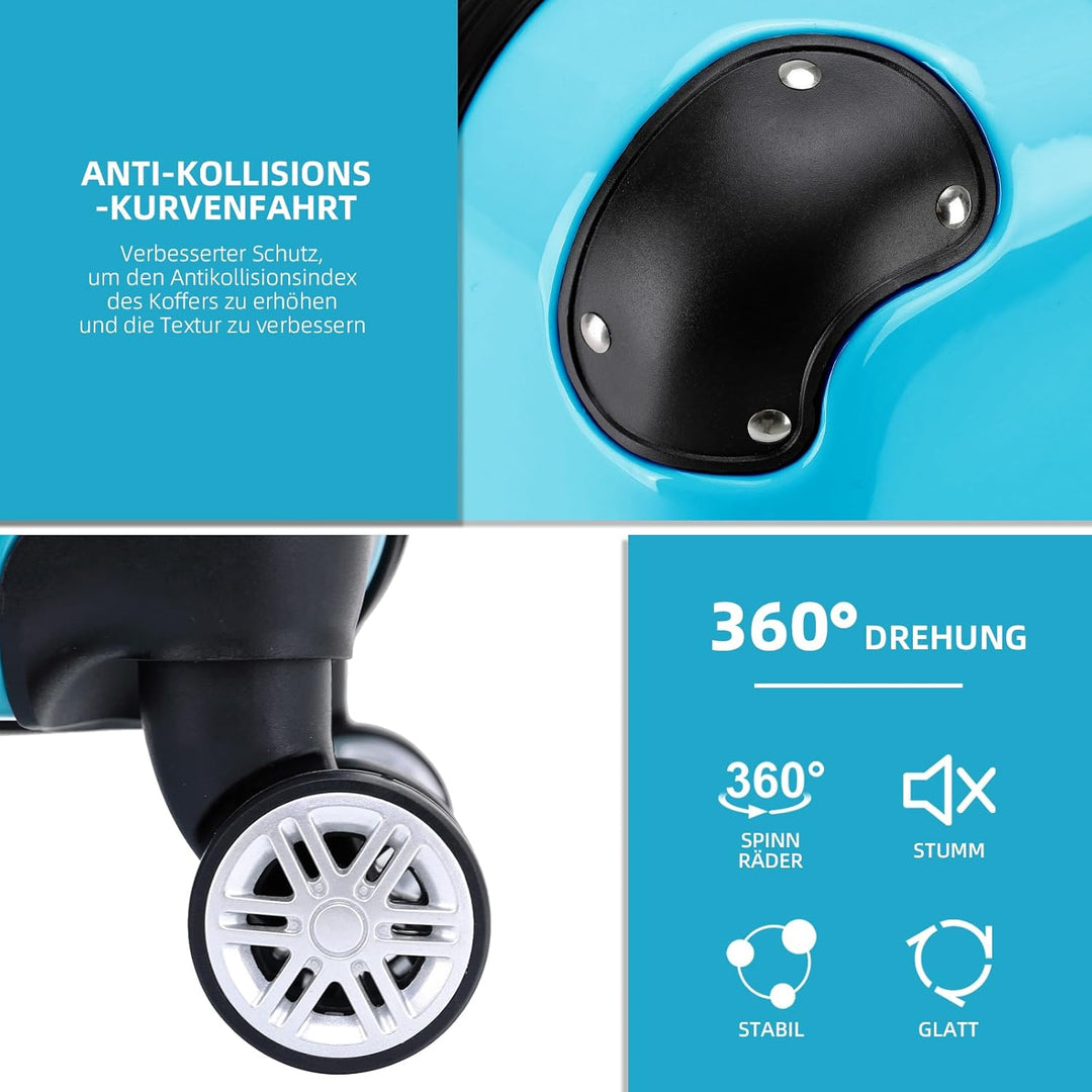 - MOBILITÄT: Die vier geschmeidig gleitenden und wendigen Spinner-Doppelrollen (360° drehbar) aus hochwertig gummierten Kunststoff bieten sanfte Beweglichkeit. Die vollversenkbare Teleskopstange ist arretierbar, so lässt sich der Trolley bei geringem