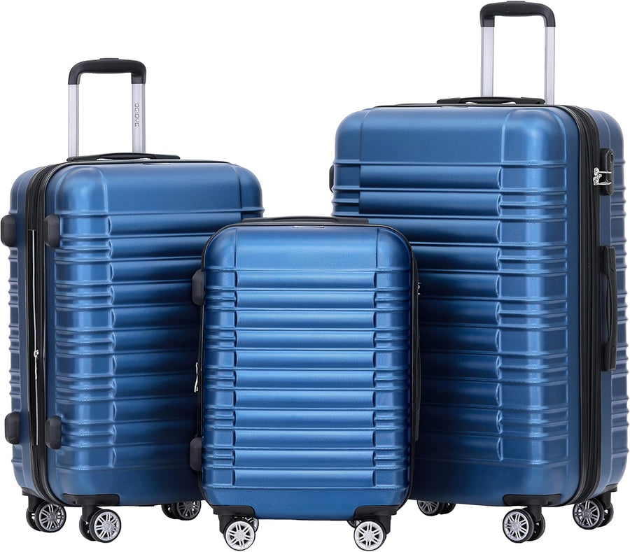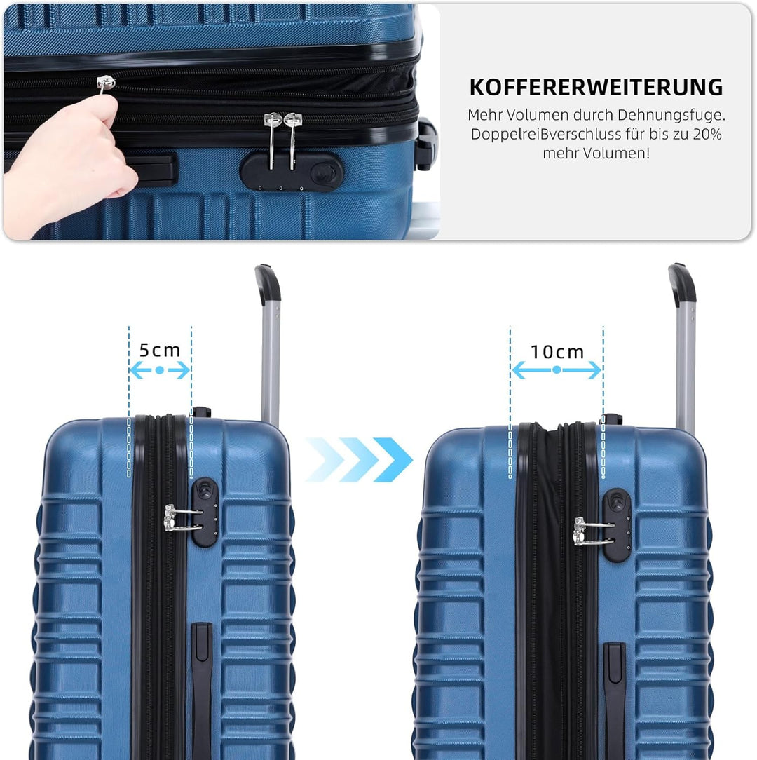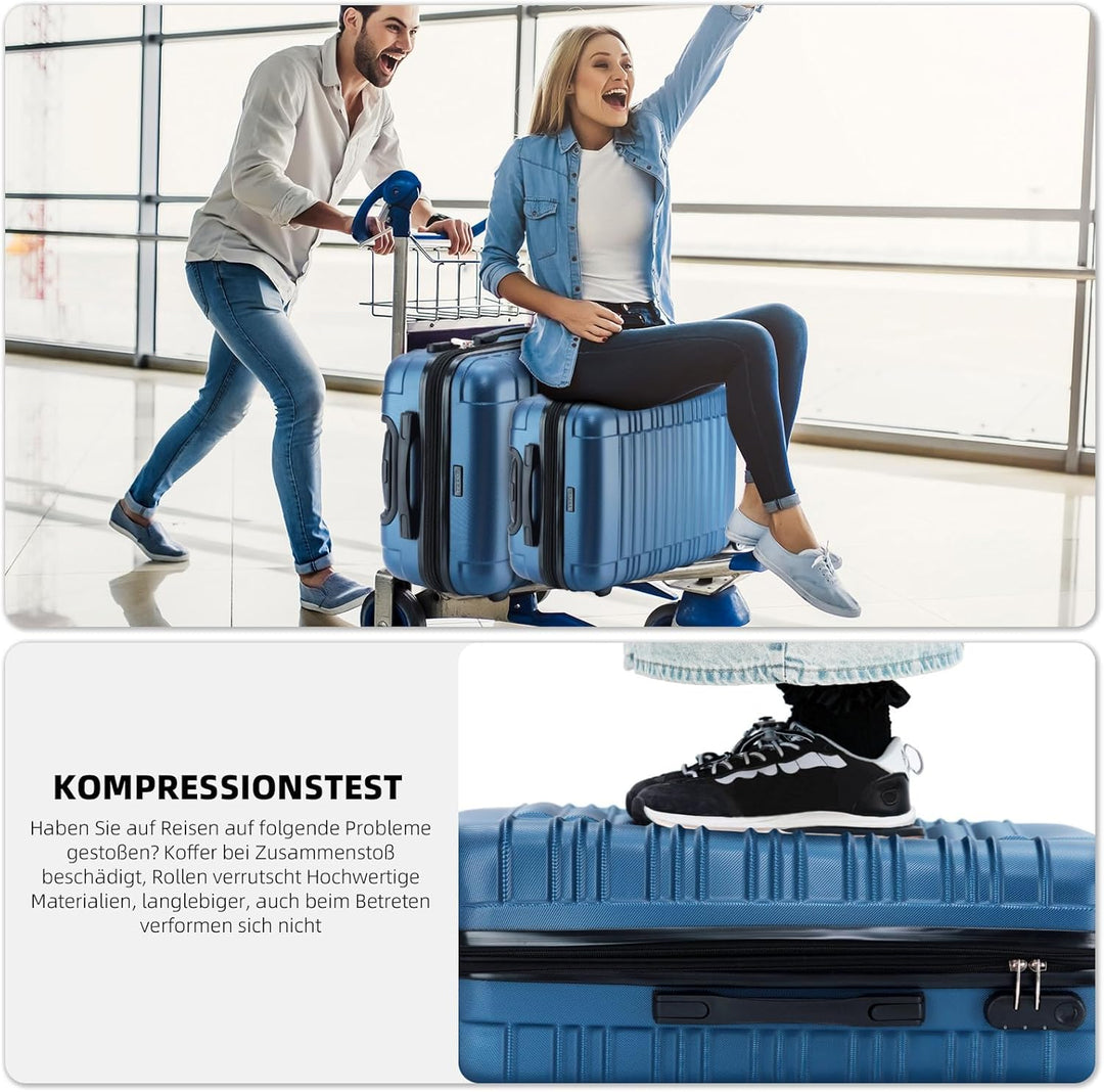 BEIBYE Hartschalen Koffer Trolley Rollkoffer Reisekoffer Zwillingsrollen Kofferset (Blau, Set) Blau