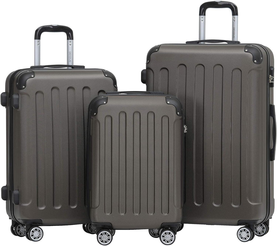 - Kofferset ineinander Stapelbar: Large Size (Aussenmassen) :76 x 50 x 27cm (H x B x T) ; Gewicht: 3,90 kg ; Volumen: ca 110 L . Middle Size (Aussenmassen) : 66 x 44 x 24cm (H x B x T) ;Gewicht: 3,20 kg ; Volumen: ca 70 L . Small Size (Aussenmassen) : 55 x