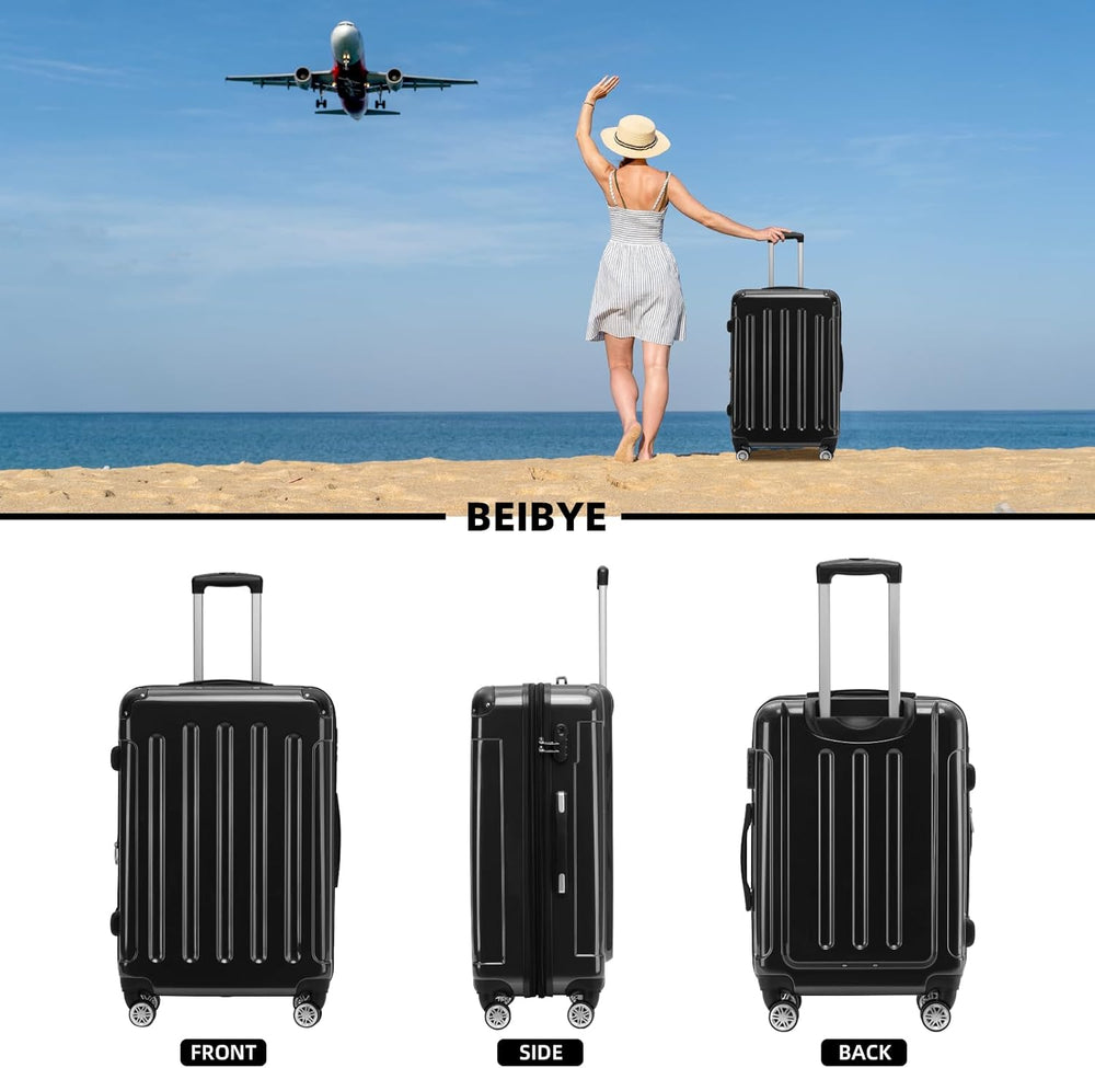 BEIBYE Zwillingsrollen 2048 Hartschale Trolley Koffer Reisekoffer in M-L-XL-Set in 15 Farben (Schwar