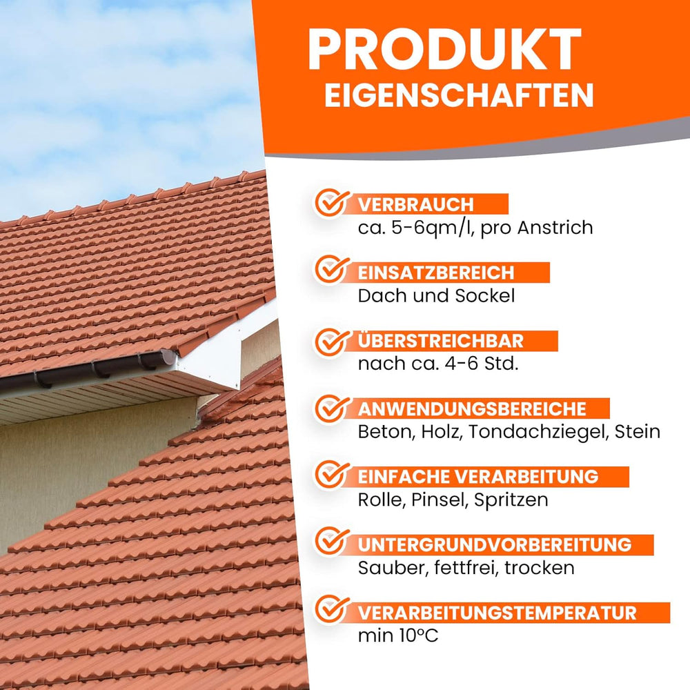 - DACHLACK / DACHFARBE & SOCKELFARBE in SEIDENMATT: Ideal für Neu- und Renovierungsanstriche von Dachflächen, Fassaden, Wand & Sockel - Beschichtung für ein wetterfestes Dach. Zudem ist der Dachanstrich hoch deckend, leicht zu reinigen, schützend gegen