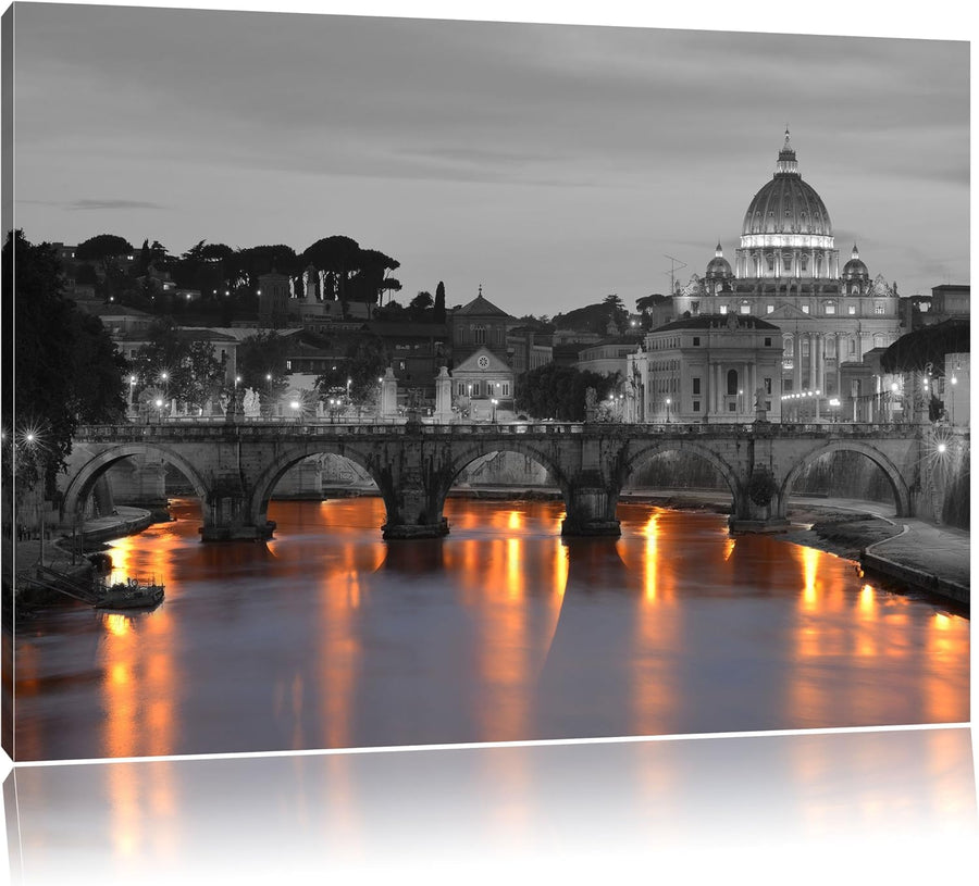 beleuchteter Petersdom am Abend schwarz/weiss Format: 100x70 auf Leinwand, XXL riesige Bilder fertig