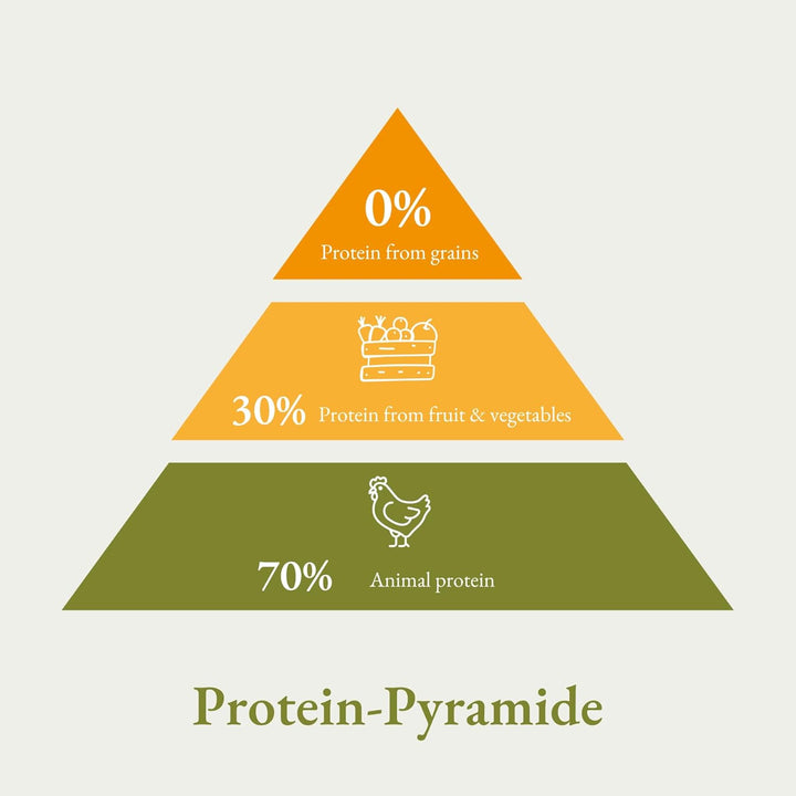 - Sehr bekömmlich, nur eine Proteinquelle (insgesamt 70% frisches Hühnerfleisch)