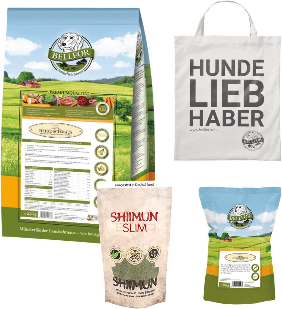 Bellfor Sparset Heide-Schmaus Getreide und Glutenfreies Hundefutter 2,5 kg Kausnacks 100 g Diät für