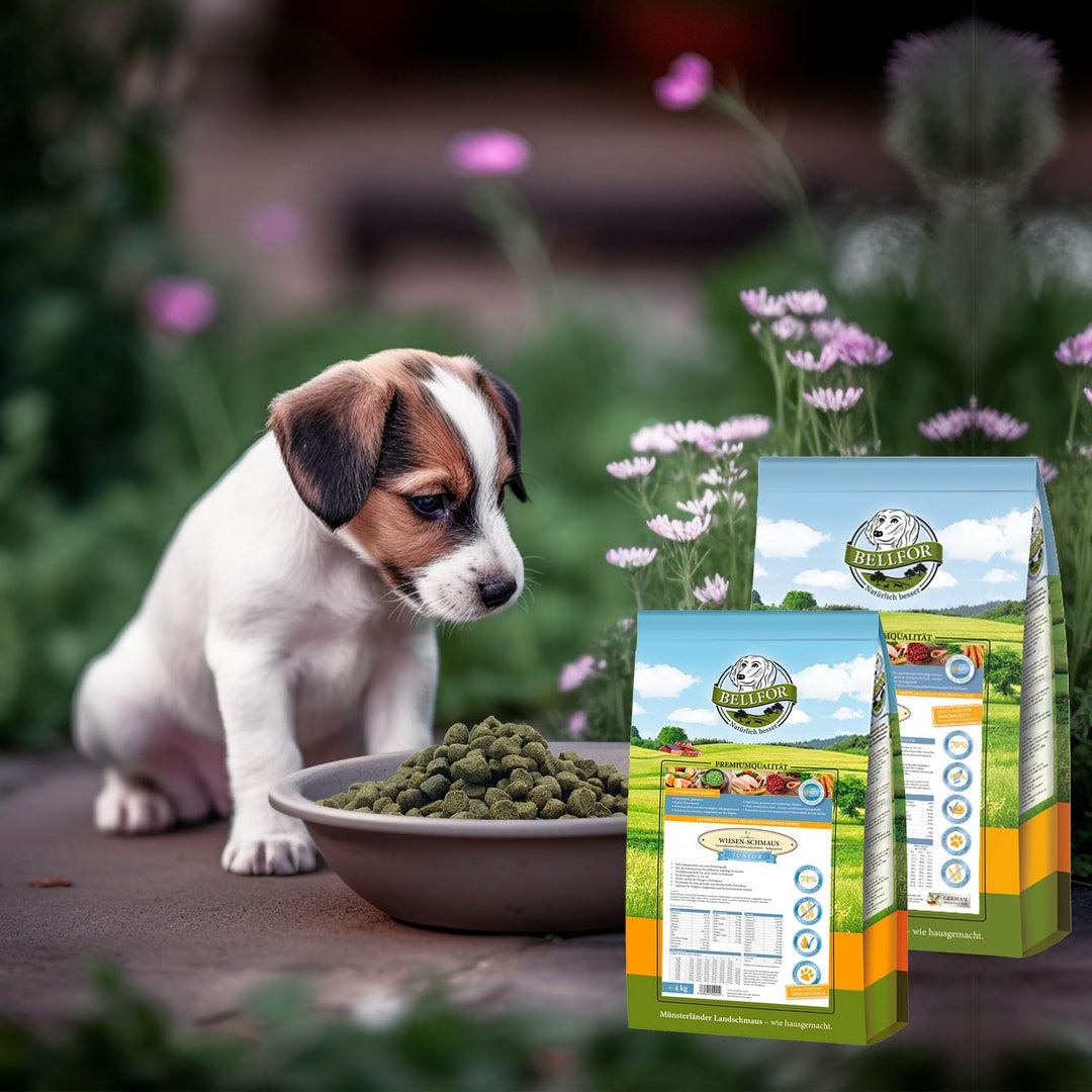 - hundefutter welpen trockenfutter Bellfor Wiesen-Schmaus Junior sehr bekömmlich, nur eine proteinquelle mit der extra-portion frischfleisch