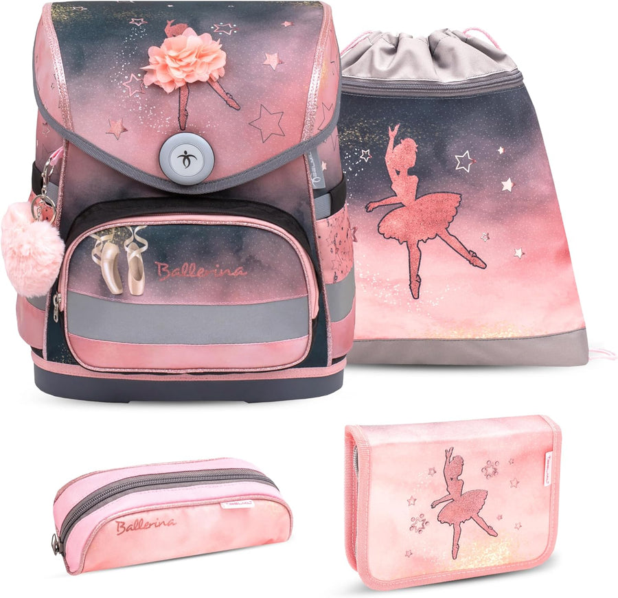 - Schulranzen-Set 4 tlg. mit Brustgurt, Magnetverschluss, geeignet von der 1. - 4. Klasse
