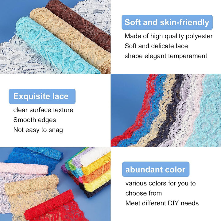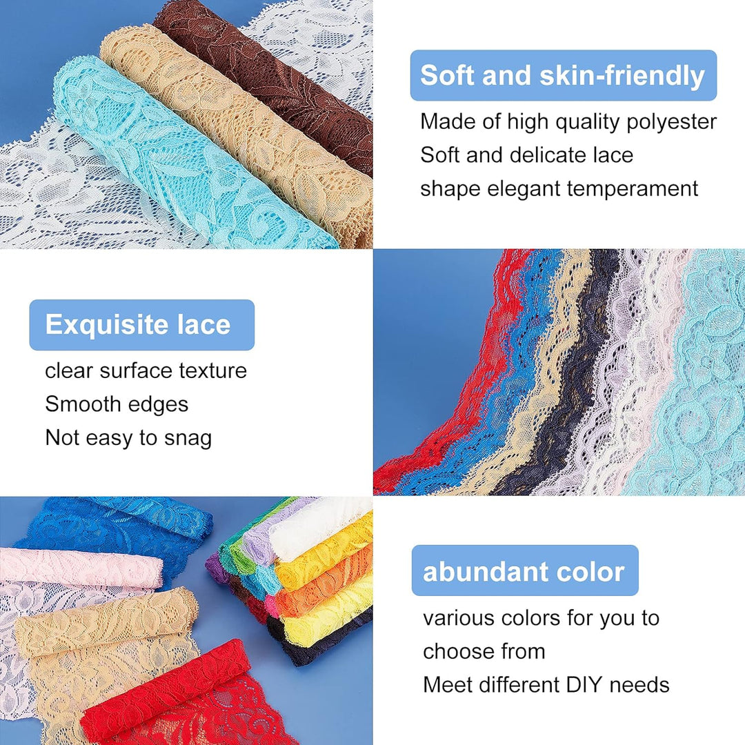 - 【Paket beinhaltet】 : 22 Rolle (1 Yard/Rolle), 1 Farbe/Rolle) gemischte Farbe Blumenmuster elastisches Spitzenband, 150mm/5.9'' breit, 22colors, 20 Meter insgesamt.