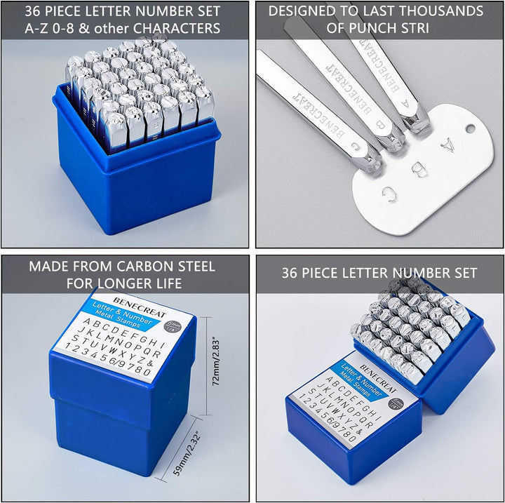 - [Anwendungsoberflächen]: Einfach in Materialien wie Aluminium, Zinn, Alkem, Kupfer, Messing, Nickel, Silber, Holz und Leder zu pressen, einzigartige und zeitlose Schrift für Ihre einzigartigen Projekte und Handwerke.