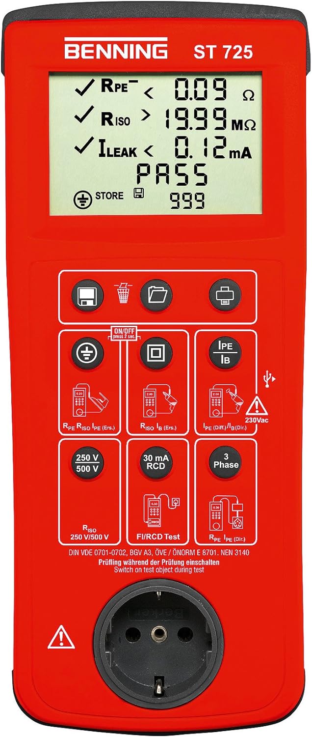- Gerätetester - Prüfung gemäss VDE 0701-0702, DGUV Vorschrift 3 (BGV A3), BetrSichV, ÖVE/ÖNORM E 8701 und NEN 3140
