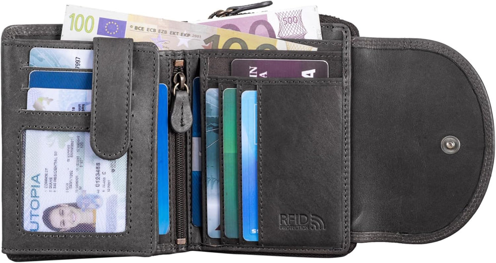 - Damen-Geldbörse - Sehr angenehmes weiches Leder, ein Tolles Material im leichten Vintage-Look. Ein echt hochwertiges Portemonnaie - durch das Langlebige Echt Leder werden Sie den unterschied fühlen.