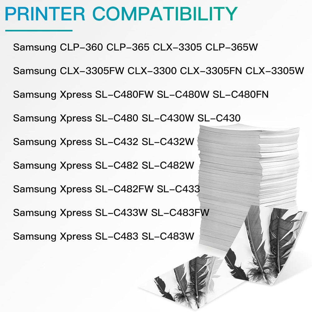 - ✅【Kompatibler Drucker】: Samsung C410W CF460FW C460W CLP-360 CLP-365 CLX-3305 CLP-365W CLX-3305FW CLX-3300 CLX-3305FN CLX-3305W CLX-3305N Xpress SL-C480FW SL-C480W SL-C480FN SL-C480 SL-C430W SL-C430 SL-C432 SL-C432W SL-C482 SL-C482W SL-C482FW