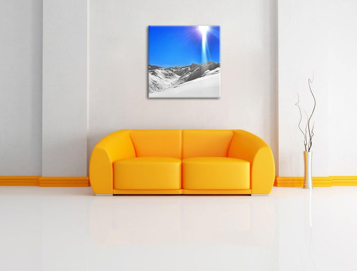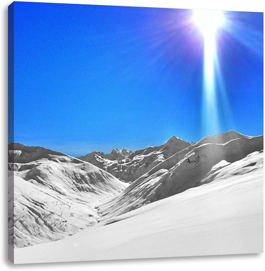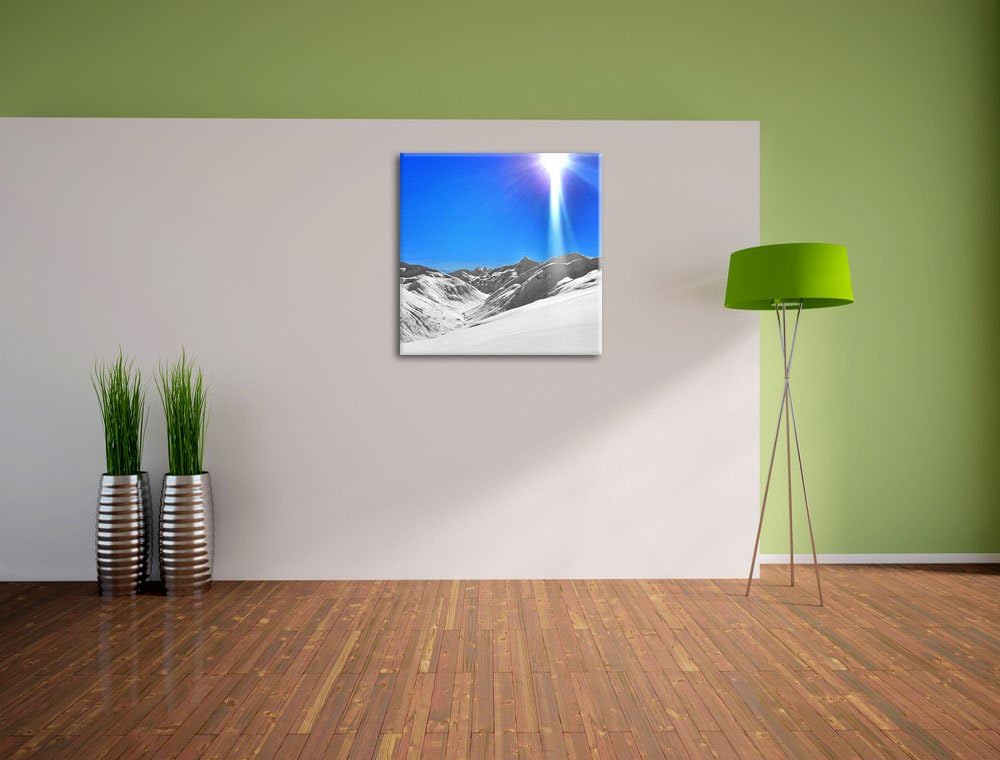 Berge im Schnee Winter, Format: 70x70 als Leinwandbild, tolle Bilder fertig auf Holzrahmen gespannt,