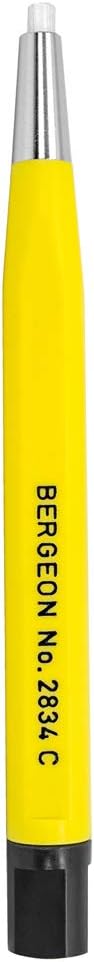 PRODUKTBESCHREIBUNGEN Kratzbürste Bergeon 2834-C mit Stiftehalter aus Bakelit mit austauschbarer Glasfaserbürste Nützlich zum Entfernen von Rost aus Uhrengehäusen. Bürsten-Ø: 4 mm, Gesamtlänge: 120 mm