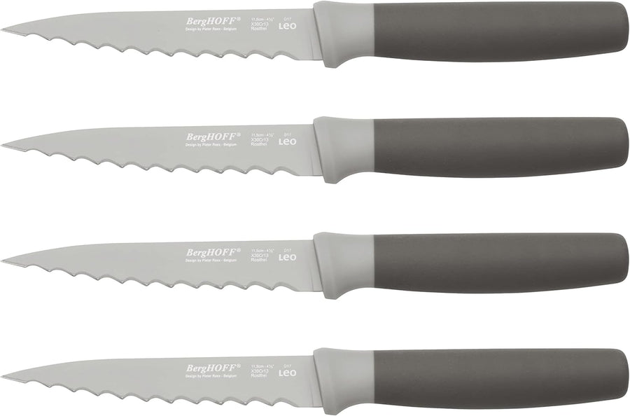 - Ob Sie ein saftiges Steak vom Grill, ein gebratenes Schweinekotelett oder eine knusprige Pizza servieren, die Leo Steak-Messer schneiden diese Gerichte, wie Butter. Ihre Gäste werden es lieben, wie der Soft-Griff in der Hand liegt