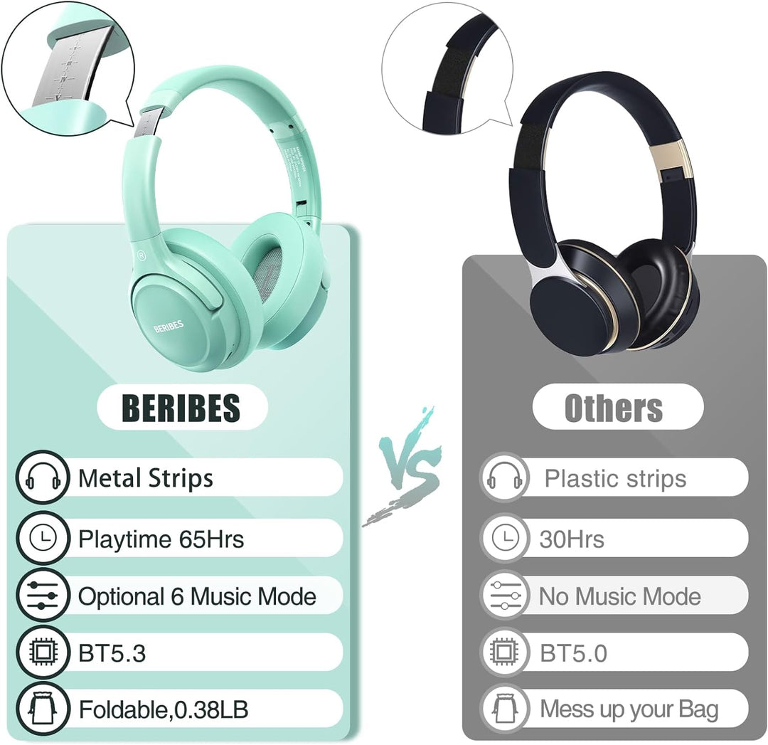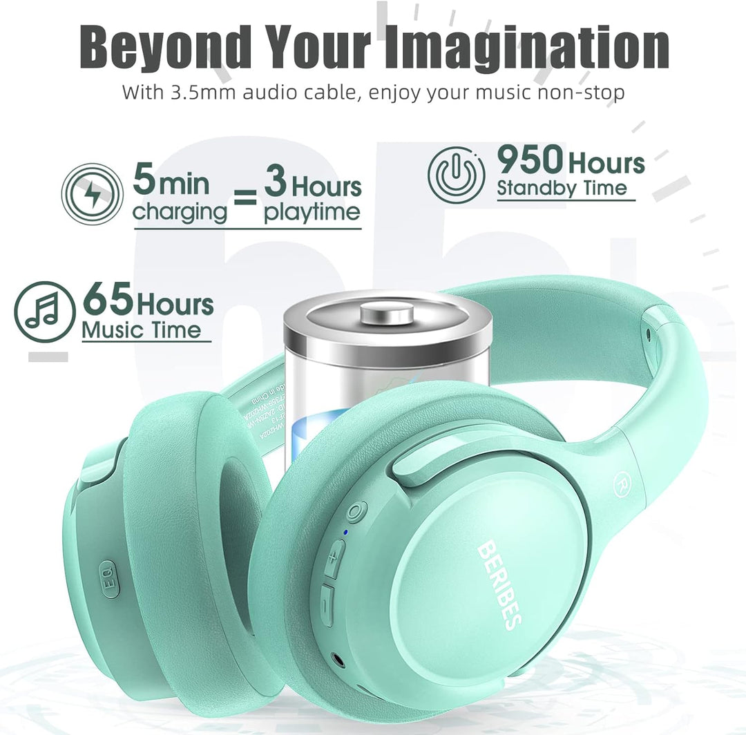 - 【65 Stunden Spielzeit】 Mit bis zu 65 Stunden Hörzeit dieses Over Ear Kopfhörers im Bluetooth-Modus haben Sie immer Musik, die Sie inspiriert. Mit einem 3,5-mm-Audiokabel können Sie problemlos zu kabelgebundenen Kopfhörern wechseln, ohne sich
