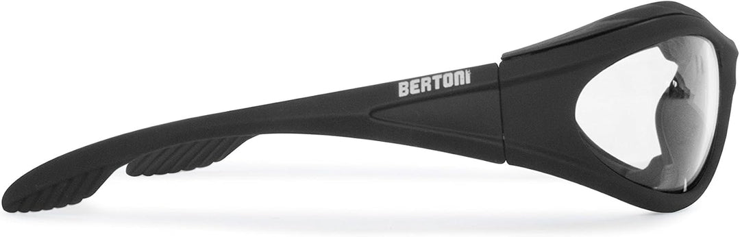 BERTONI Motorradbrille Beschlagfrei Windschutz – Matt Schwarz AF125 Bikerbrillen (Transparent Lens)