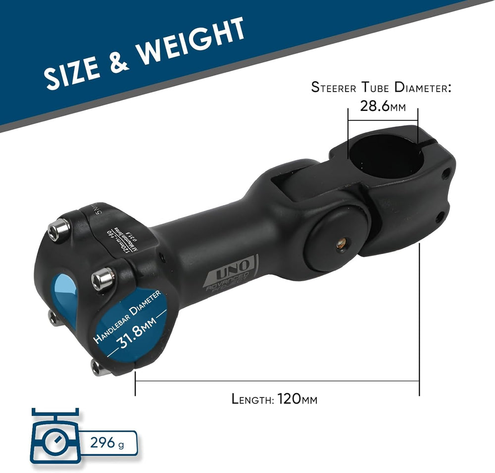 - ✅ Grösse: 31,8 × 120 mm .Lenkermitteldurchmesser: 31,8 mm ; Steigrohrdurchmesser: 28,6 mm (1-1 / 8 ") ; Länge: 120 mm ; Gewicht: 295 g ; Grad: 0-60 ° einstellbar, bitte wählen Sie das richtige Modell für Ihre Anforderungen.