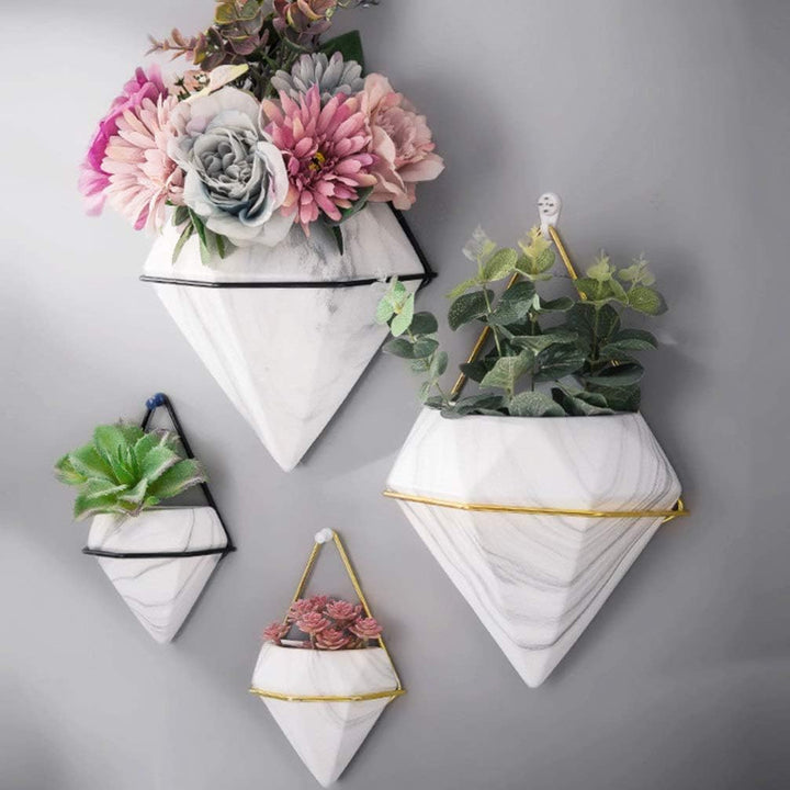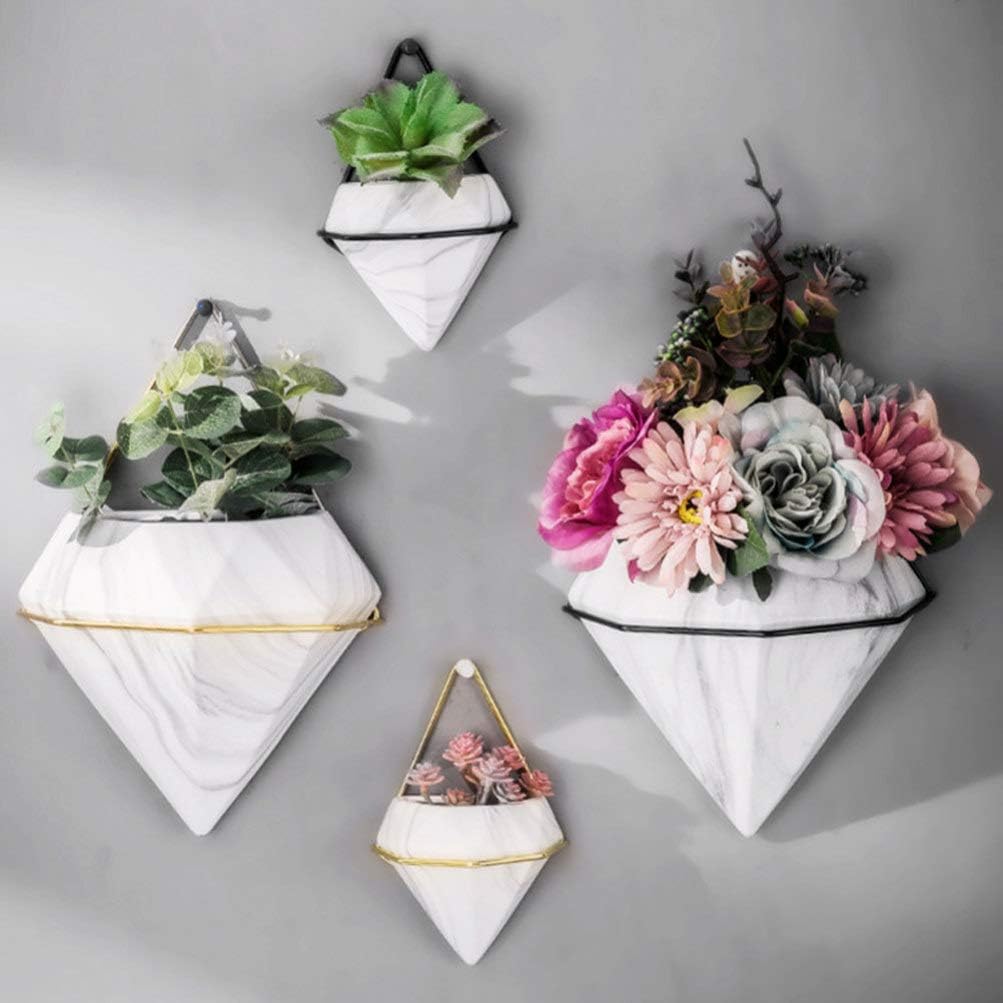 - Diamant Wand Pflanzer Geometrische Wandvasen Marmor Weiss, Keramik montiert Sukkulente Luft Pflanze Blumentöpfe Kaktus Kunstpflanzen Behälter Weiss Modernes Innendekor für Zuhause und Büro