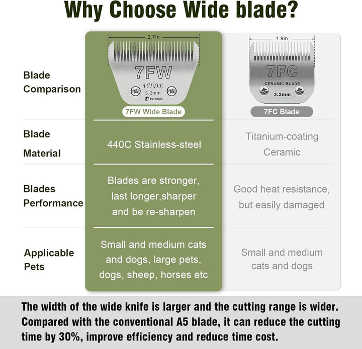 BESTBOMG 10W+7FW+5FW+4FW Ersatz-Breitklinge für die Hundepflege, kompatibel mit Hundeschermaschinen