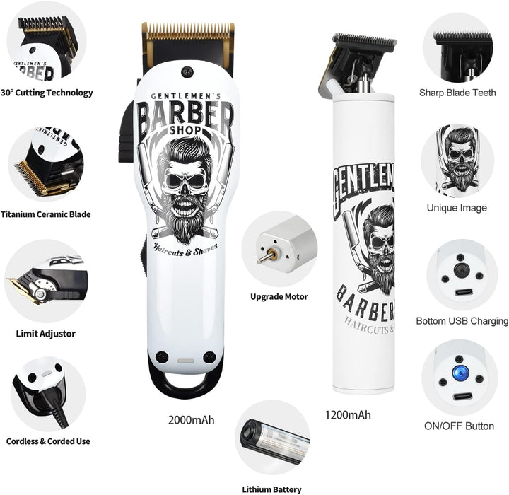 - đHaarschneidemaschinen-SetâDieses Haarschneidemaschinen-Set enthĂ€lt eine professionelle Haarschneidemaschine und einen Detailschneider. Der professionelle Haarschneider eignet sich zum Trimmen von Zollköpfen, Mustern usw. Er kann als Haarschneidemaschine fĂŒr zu Hause und im Friseursalon verwendet werden. Es eignet sich fĂŒr Herren-, Damen- und Kinderhaarschnitte, ist vielseitig einsetzbar und eignet sich perfekt als Weihnachtsgeschenk.