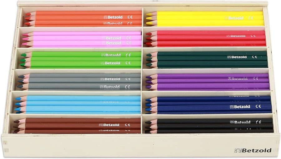 Betzold - 144 Dreikant-Stifte in Holzbox - Kinder-Malstifte Buntstifte Farbstift, Holz
