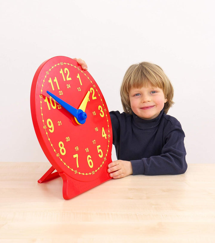 - DEMONSTRATIONS-UHR FÜR DEN MATHE-UNTERRICHT: Die rote Lernuhr ist aus robustem Plastik gefertigt. Sie eignet sich besonders um das Konzept der Uhrzeit den Kindern beizubringen.