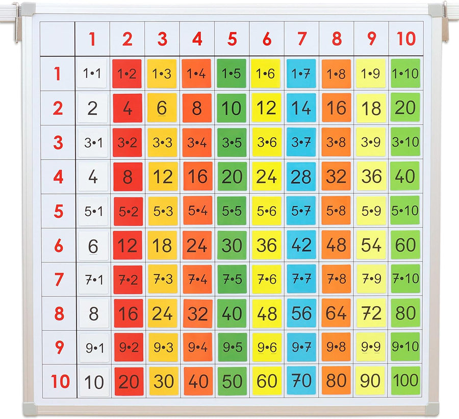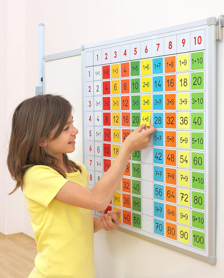 • PRAKTISCHE UND MAGNETISCHE RECHENTAFEL: Die Einmaleins-Tafel ist rasch aufgehängt und mit den magnethaftenden Aufgaben- und Ergebniskärtchen bestückt und einsatzfähig. So kann das 1x1 entdeckt und geübt werden.