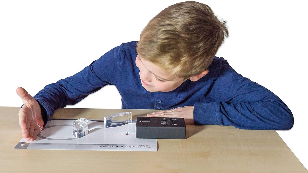 - OPTIK-EXPERIMENTIER-KASTEN: Das Set besteht aus 7 optischen Linsen, 1 LED-Strahler box, 4 Arbeitsunterlagen sowie einer Handreichung mit zahlreichen Lerntexten und Lösungen - Perfekt für kleine Forscher.