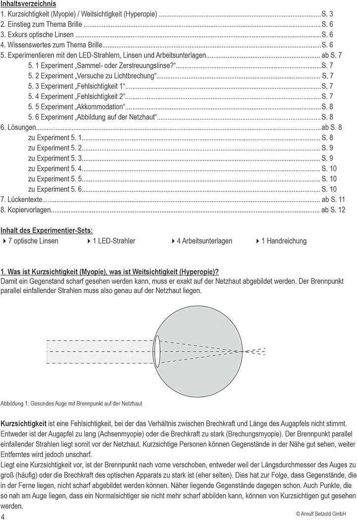 - SPANNENDE EXPERIMENTE: Wie funktioniert das Auge. Was ist Fehlsichtigkeit. Diese und weitere Fragen rund um das Thema Sehen werden beim selbstständigen Experimentieren erklärt und verstanden.