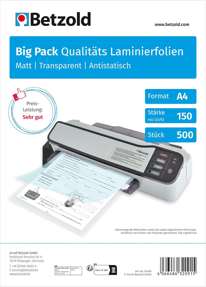 - LAMINIERFOLIEN IM MEGA-PACK: Im Big-Pack sind 500 Laminierfolien in bewährter Qualität im Format A4 enthalten. Ein Mega-Pack zum Sparpreis ideal für den Schulgebrauch oder im Büro.