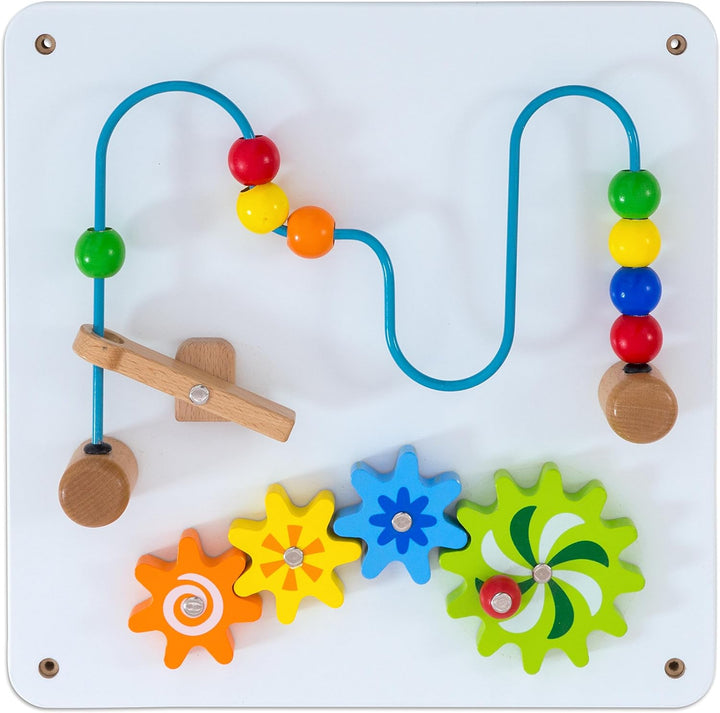 - GRUPPENBESCHÄFTIGUNG FÜR KINDERGARTEN UND KINDERZIMMER: Mehrere Kleinkinder können sich an der Motorikwand des Holz-Wandspieles beschäftigen. Tolles Motorik-Spielzeug als Kindergarten-Ausstattung oder für zu Hause.