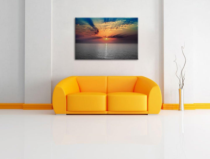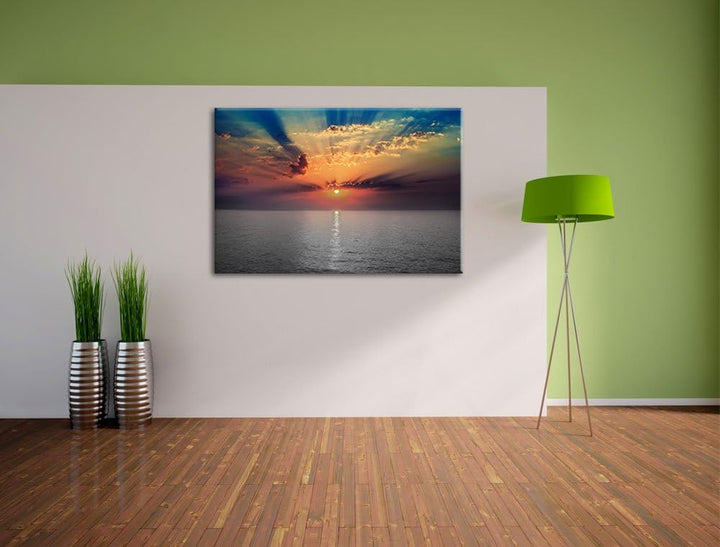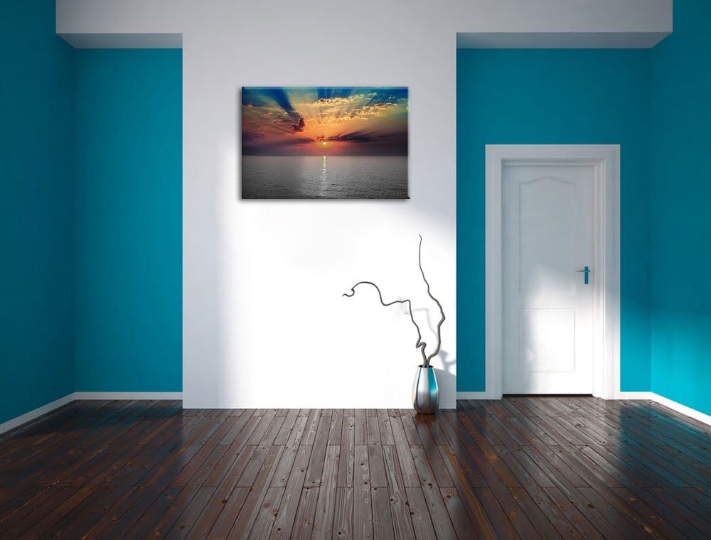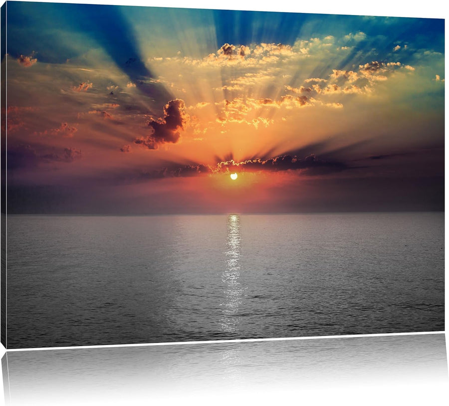 bezaubernder Sonnenuntergang über dem Meer schwarz/weiss Format: 100x70 auf Leinwand, XXL riesige Bi