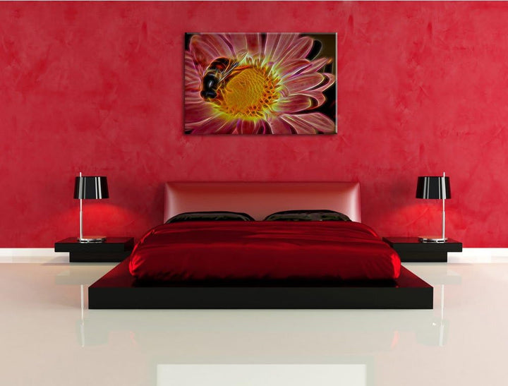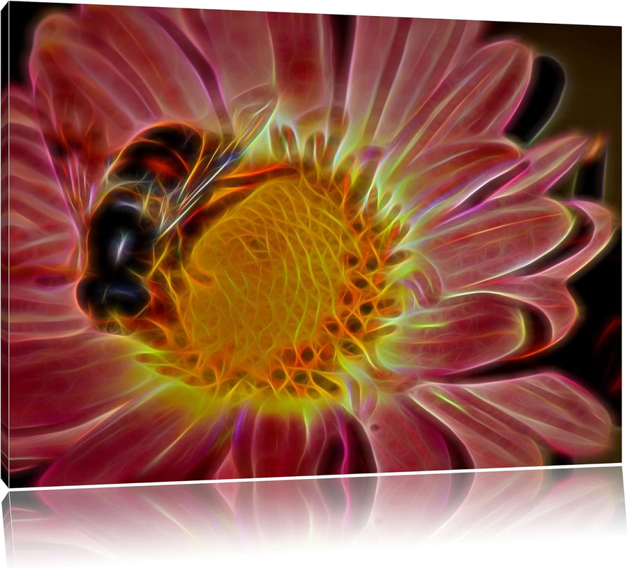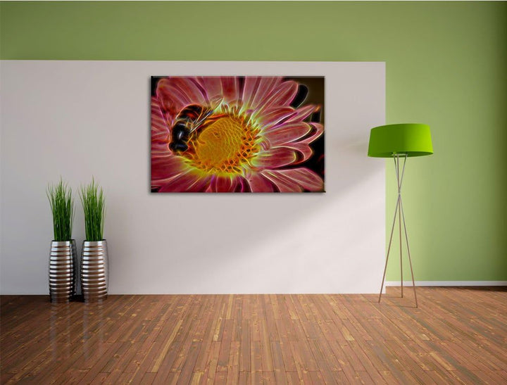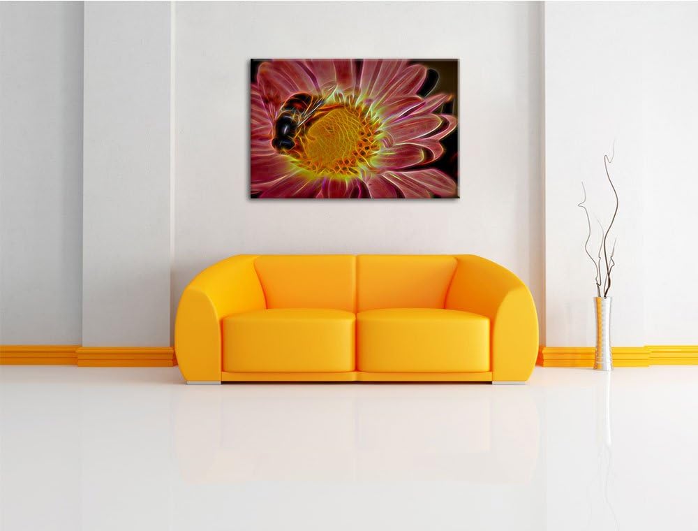 Biene auf Margarete Deluxe Format: 100x70 cm auf Leinwand, XXL riesige Bilder fertig gerahmt mit Kei