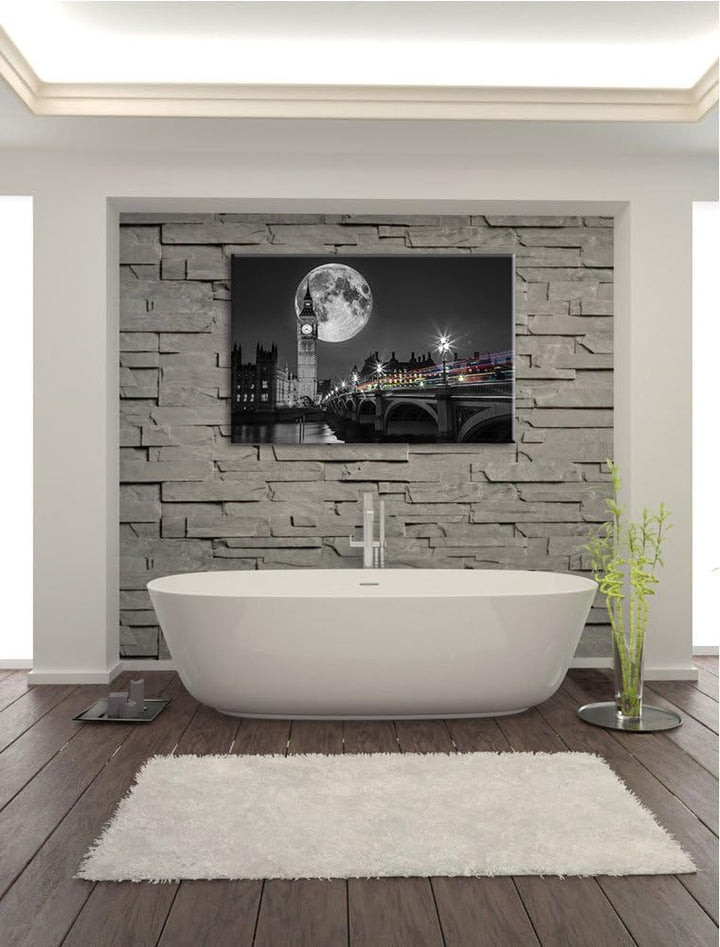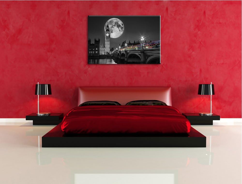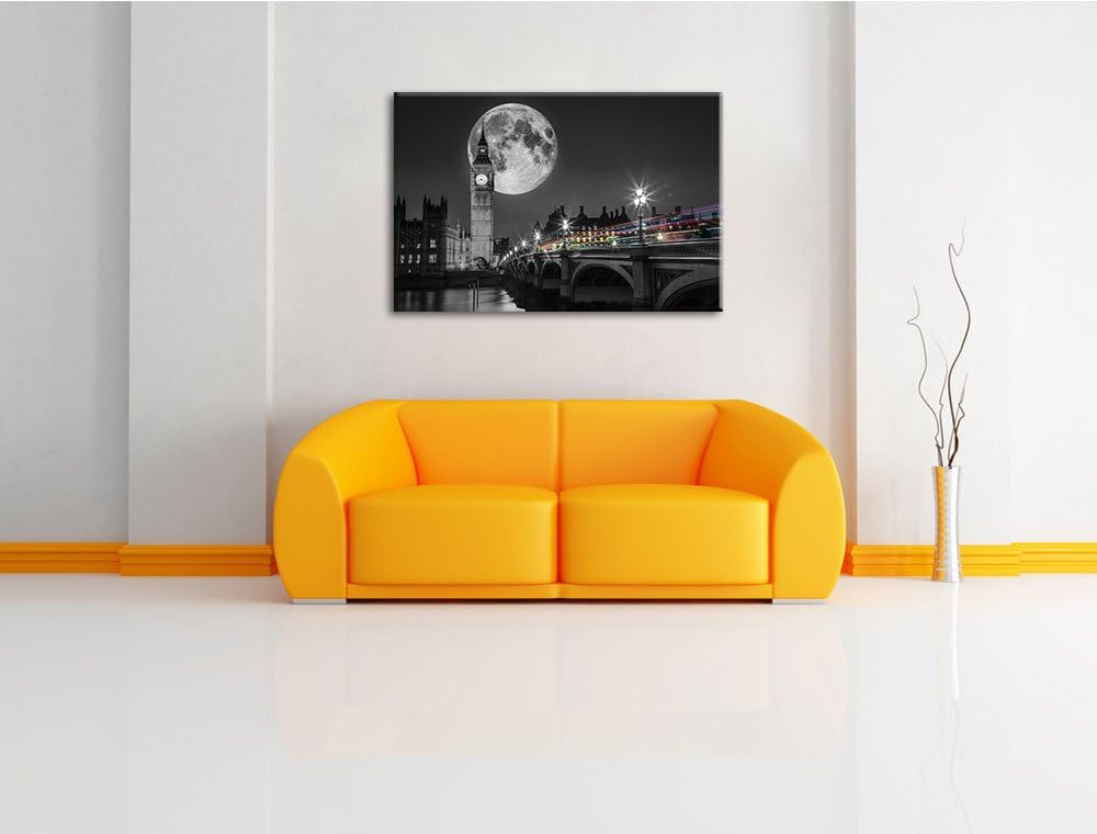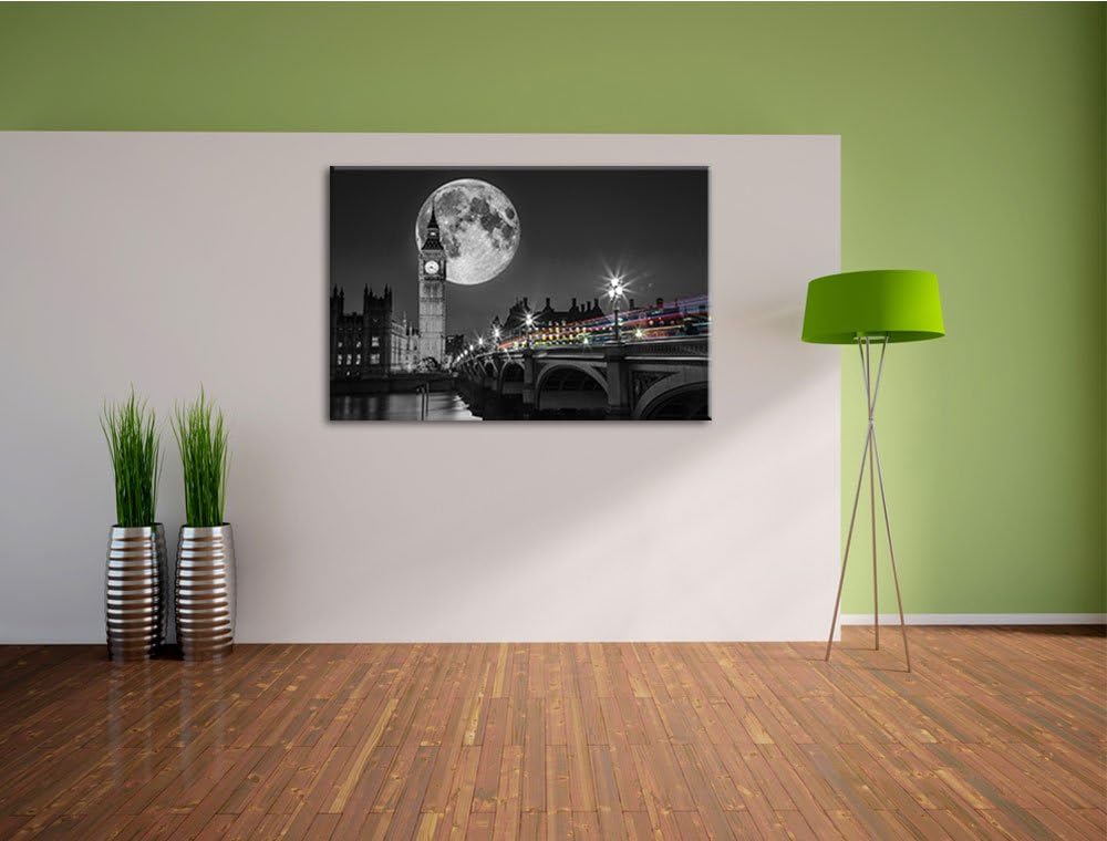 Big Ben vor dem Mond in London schwarz/weiss Format: 100x70 auf Leinwand, XXL riesige Bilder fertig