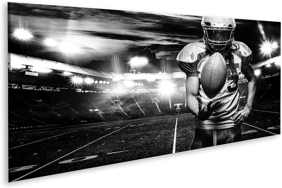 islandburner Bild auf Leinwand American Football Spieler Helm Mit Ball Im Stadion Schwarz Weiss Bild