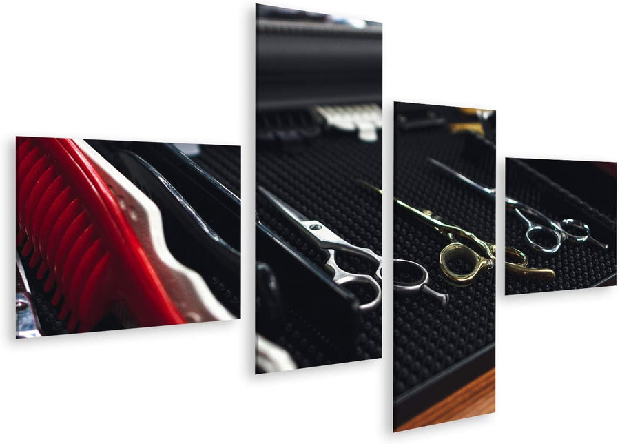 Bild auf Leinwand Barbershop Thema Die Werkzeuge des Friseurs Geräte Wandbild Poster Kunstdruck Bild