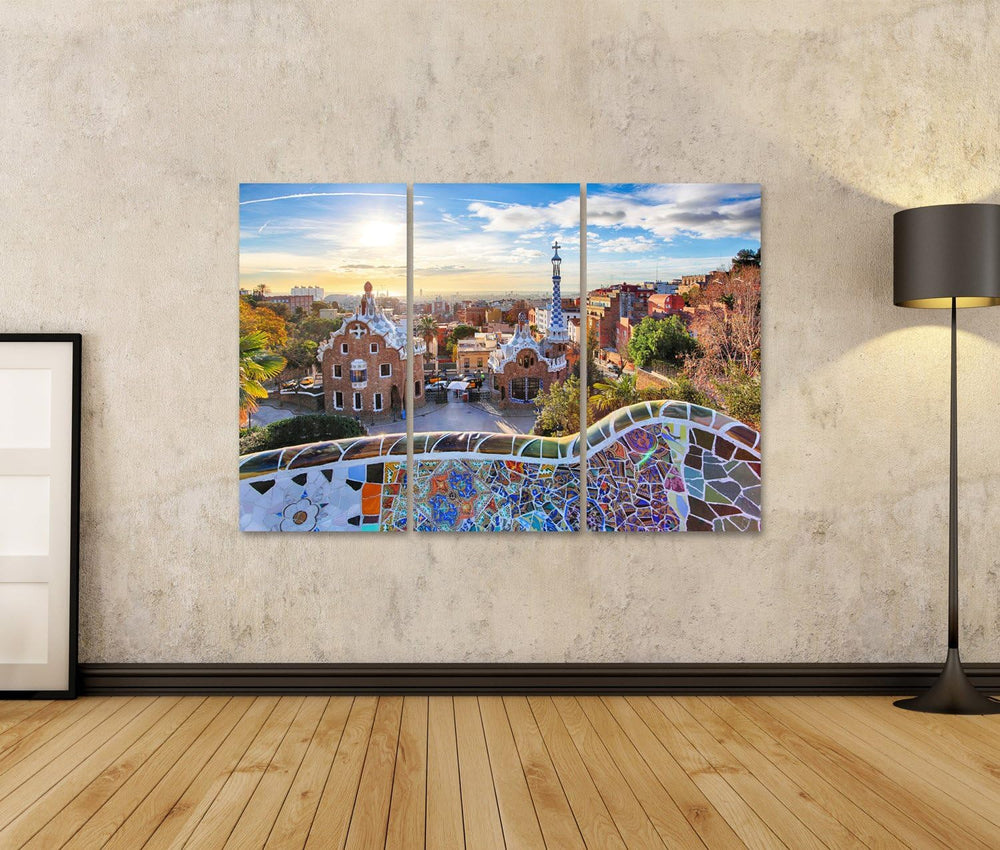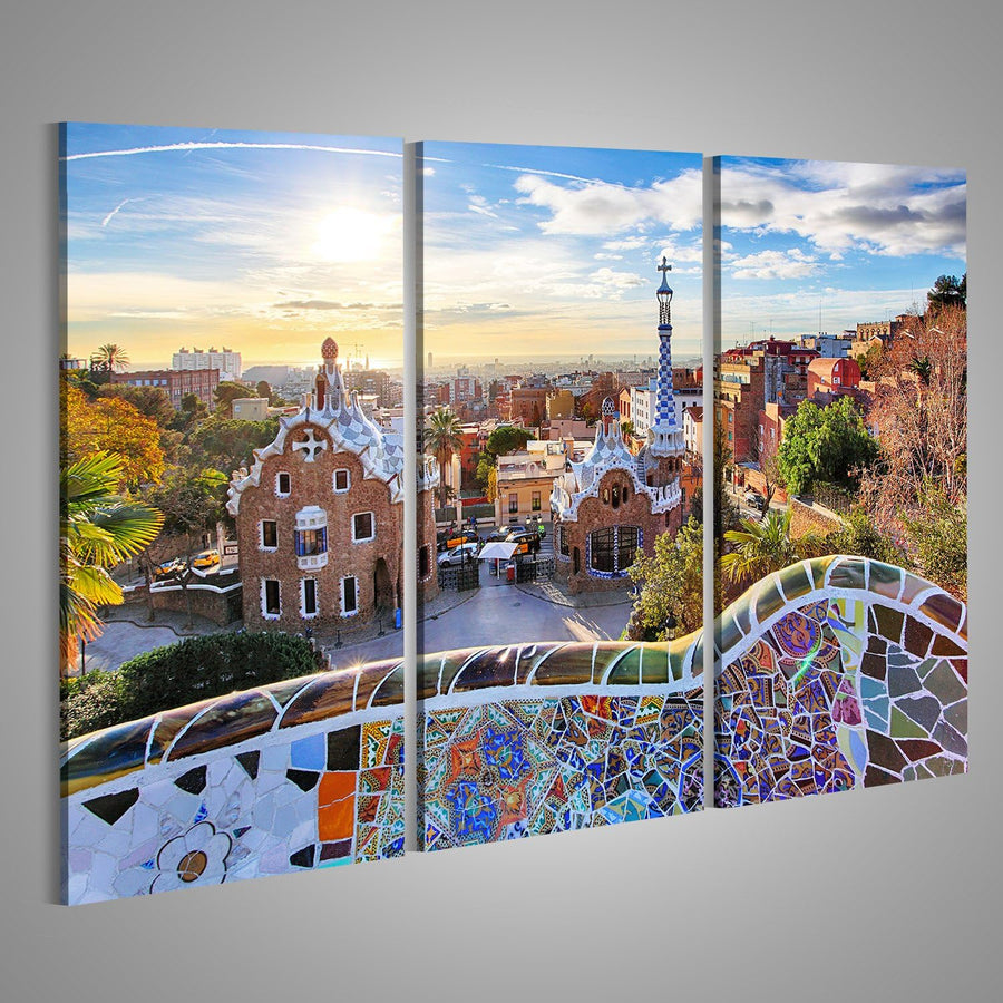 Bild auf Leinwand Barcelona Park Güell Spanien Wandbild Poster Kunstdruck Bilder Format: 130x80cm -