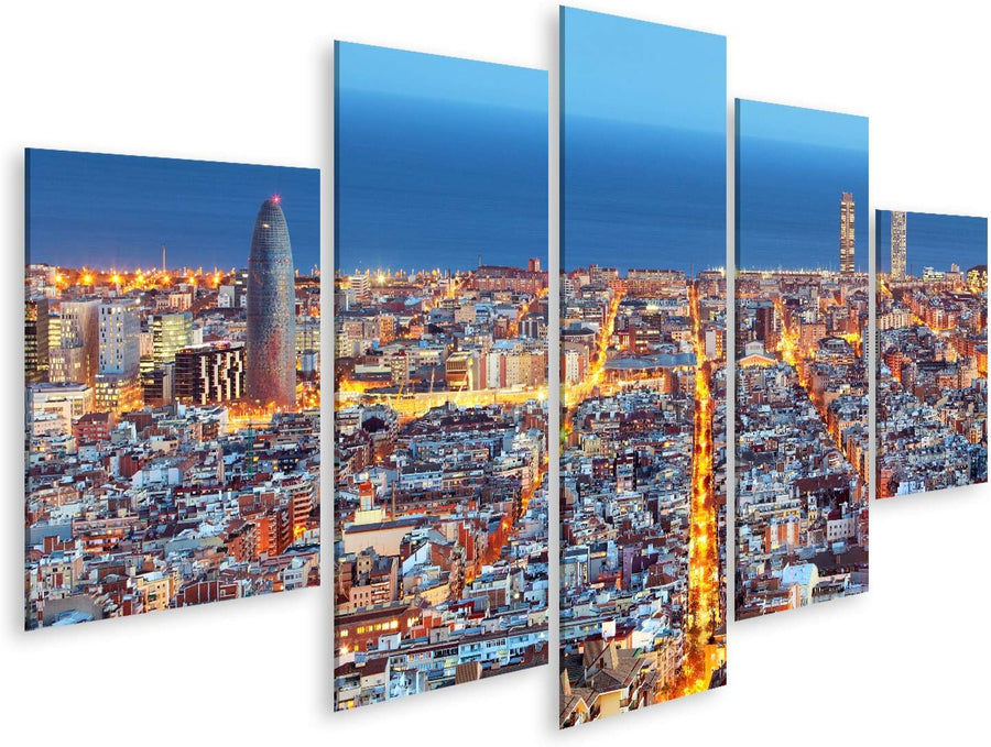 Bild auf Leinwand Barcelona Skyline Luftaufnahme Nacht Spanien Wandbild Poster Kunstdruck Bilder For
