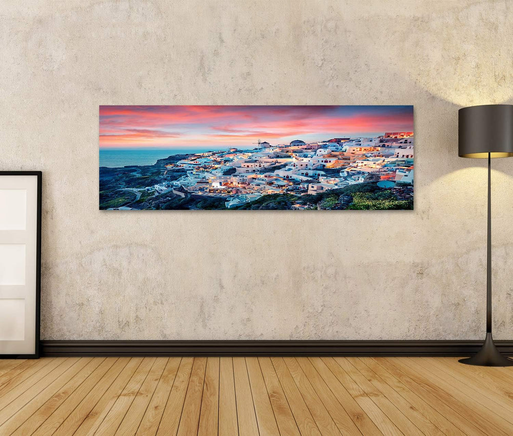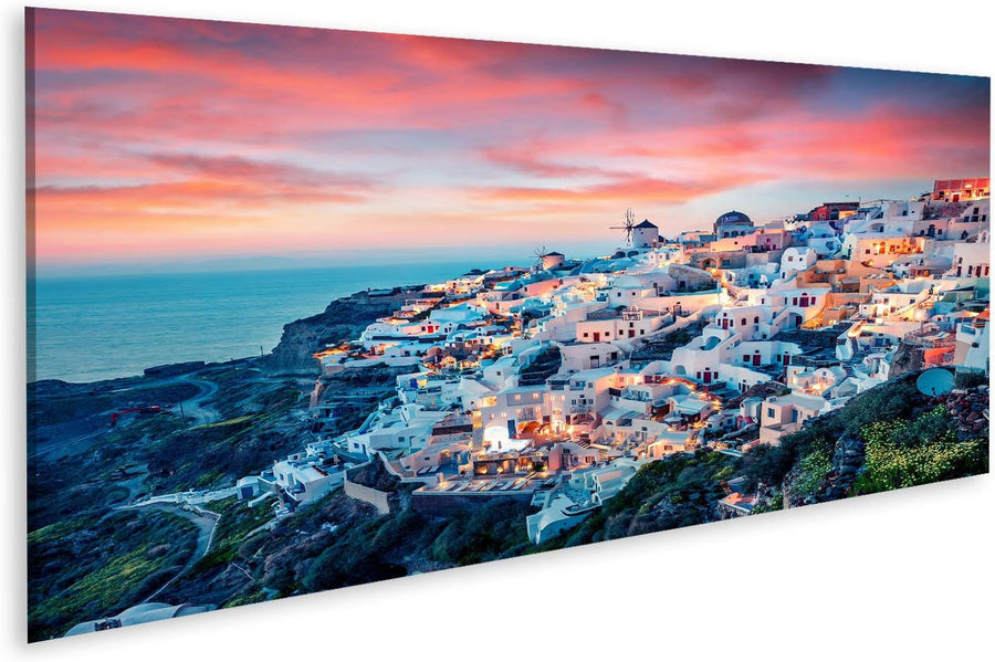 Bild auf Leinwand Beeindruckender Abendblick Auf Die Insel Santorin Malerischer Frühlingssonnenunter